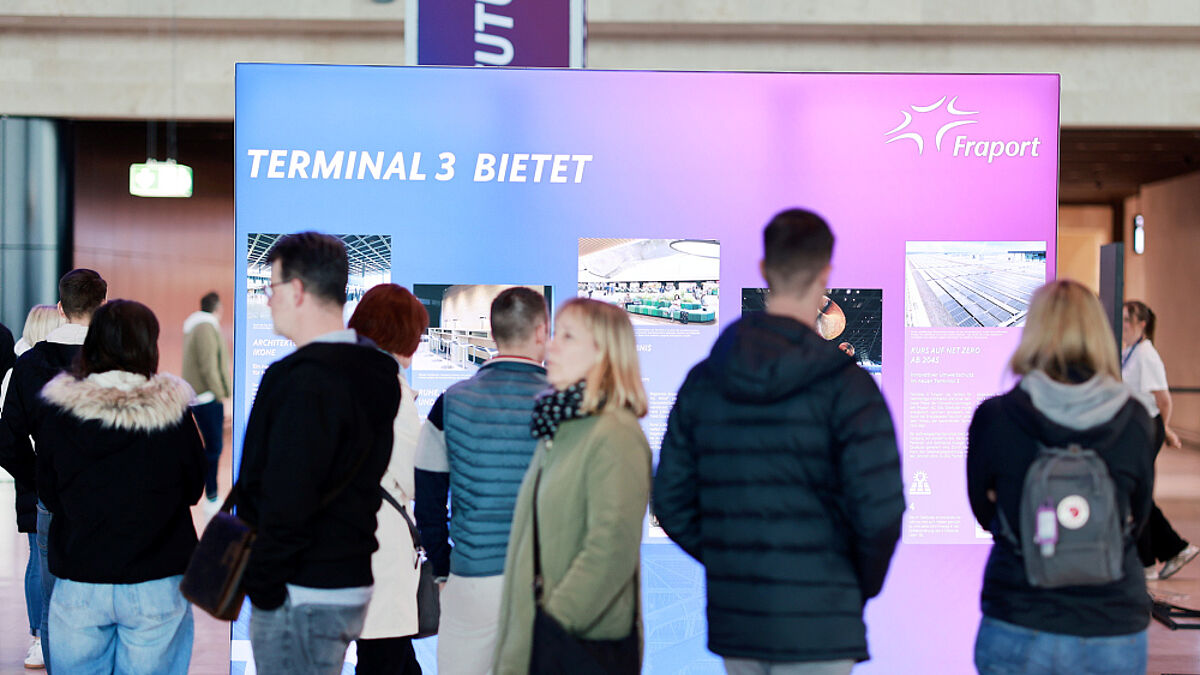 The time flew by: on April 11 and 12, 30,000 guests joined us in exploring and celebrating our new Terminal 3 ahead of the official inauguration at “READY FOR TAKEOFF,” a large Terminal 3 event hosted by Fraport and HIT RADIO FFH. There was plenty to discover, including the iconic, timelessly elegant check-in hall, the easy wayfinding, an exhibition on the terminal’s construction and an impressive dynamic artwork by Julius von Bismarck.